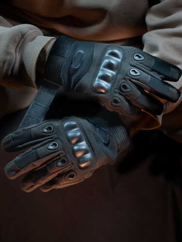 Перчатки тактические мужские черные, мотоперчатки с сенсорными пальцами. Размер L