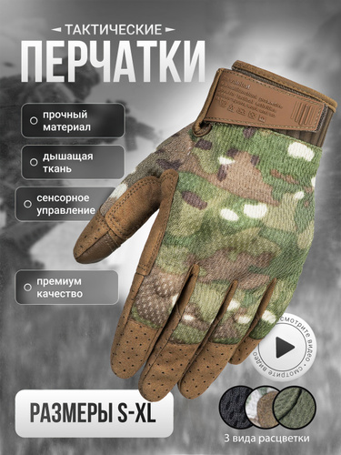Тактические мужские перчатки сенсорные военные камуфляжные (Мультикам) Ukki. Размер L