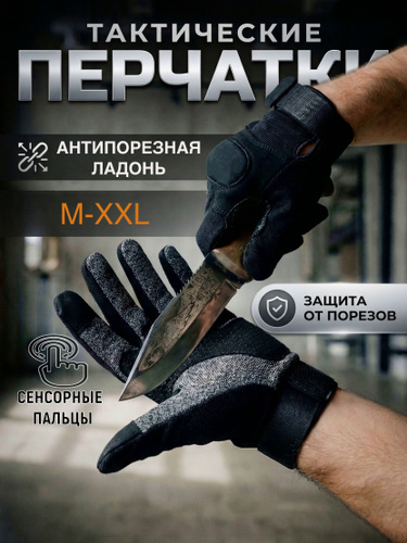 Тактические перчатки мужские антипорезные сенсорные, черный/серый
