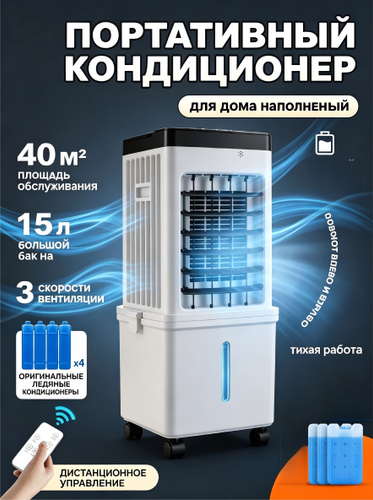 Мобильный кондиционер напольный 3в1 60-2000Вт, 1.5л, вентилятор с 2 аккумуляторами холода
