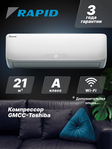 Сплит-система кондиционер RAPID RAM-07HJ/N1_V4 комплект, мощностью 7000 BTU, для помещения до 21 кв.м., с охлаждением, обогревом, осушением, вентиляцией, ночной режим