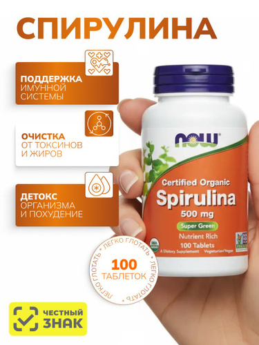 Спирулина Натуральная NOW Spirulina таблетки массой 535,45 мг 100 шт