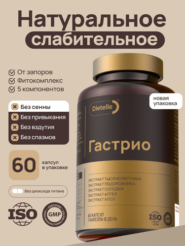 Слабительное средство натуральное Гастрио от запоров укрепление для желудка, с экстрактами алоэ, алтея, подорожник, тысячелистник Dietelle Expert
