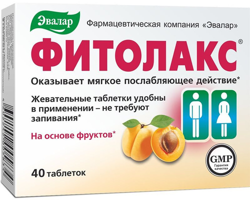 Фитолакс натуральное мягкое слабительное на основе фруктов, для ускорения метаболизма, для детоксикации таблетки №40