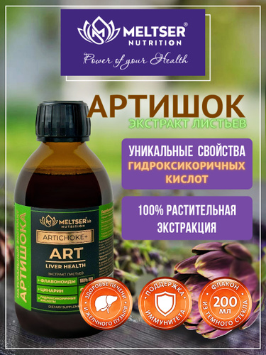 Meltser АРТИШОК (натуральный экстракт листьев) с гидроксикоричными кислотами "ARTICHOCK+" 200 мл. Годен до 19.02.27г.