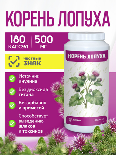 Корень лопуха 180 капсул натуральное растительное сырьё, источник инулина, для очищения и жкт