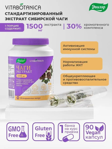 Витаботаника экстракт чаги натуральной березовой Эвалар, для иммунитета и жкт, 90 капсул