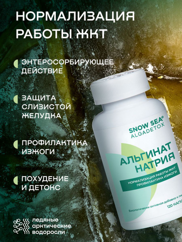 Биологически активная добавка к пище АЛЬГАДЕТОКС альгинат натрия, 120 капс.