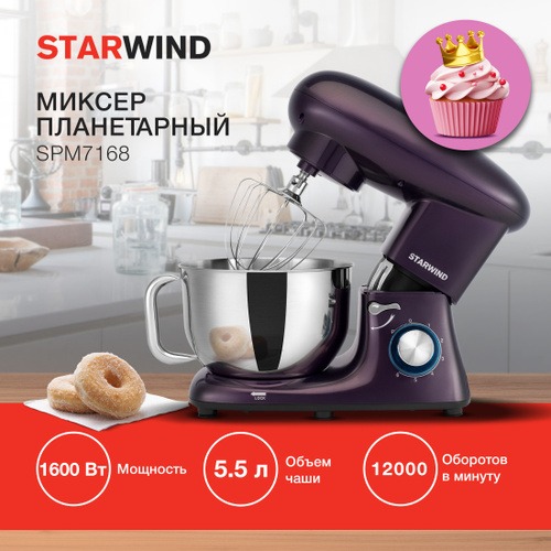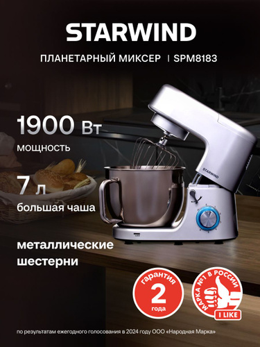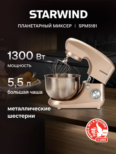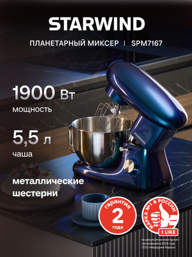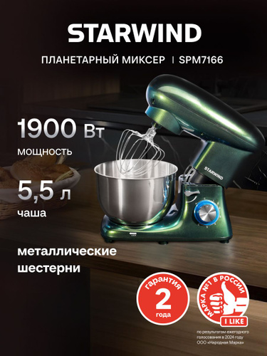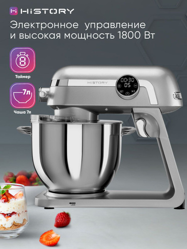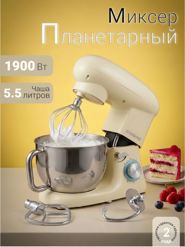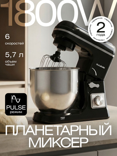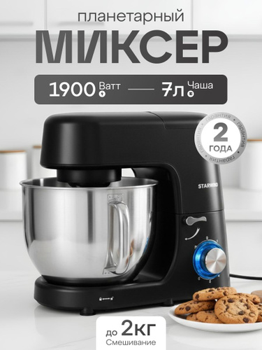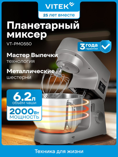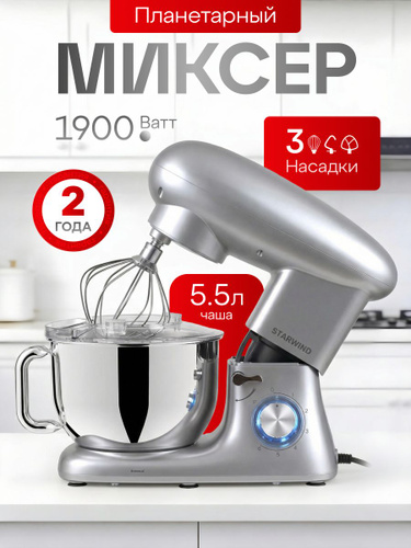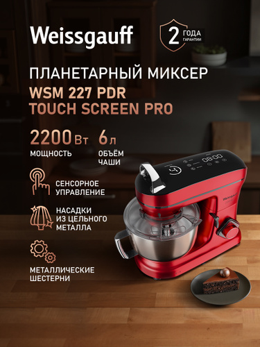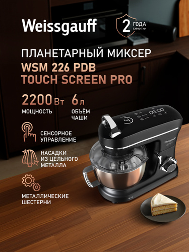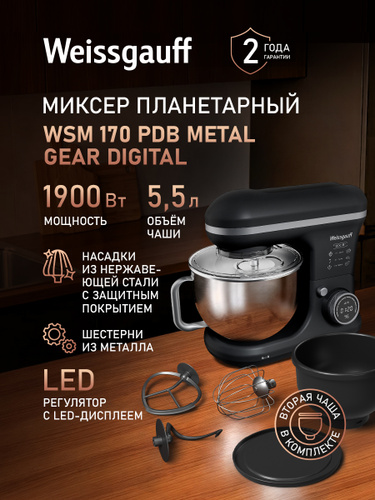 Weissgauff Планетарный миксер WSM 170 PDB Metal Gear Digital, Мощность 1900 Вт, Объём чаши 5,5 литров, 8 Скоростей, Импульсный режим, Металлические шестерни, Цифровой дисплей с крупной индикацией, Таймер с автоотключением, Защита от перегрева, 1900 Вт