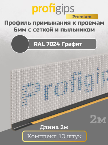 Нащельник для окон профиль примыкания Profigips Premium (Профигипс) 6мм * 2000мм (10 штук) с сеткой и манжетой, цвет: графит