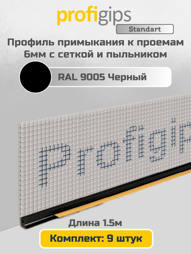 Нащельник для окон профиль примыкания 6мм * 1500мм (9 штук) с сеткой и манжетой, цвет: Черный (Ral 9005), Profigips (Профигипс)