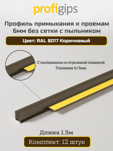 Оконный профиль примыкания 6мм * 1500мм (12 штук) без сетки, с манжетой Profigips (Профигипс) RAL 8017 Коричневый