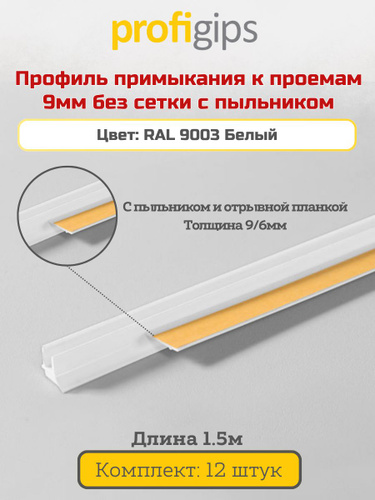 Оконный профиль примыкания 9мм * 1500мм (9 штук) без сетки, с манжетой Profigips (Профигипс)