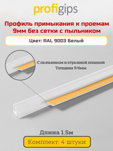 Оконный профиль примыкания 9мм * 1500мм (4 штуки) без сетки, с манжетой Profigips (Профигипс)