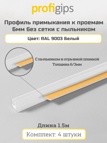 Оконный профиль примыкания 6мм * 1500мм (4 штуки) без сетки, с манжетой Profigips (Профигипс)