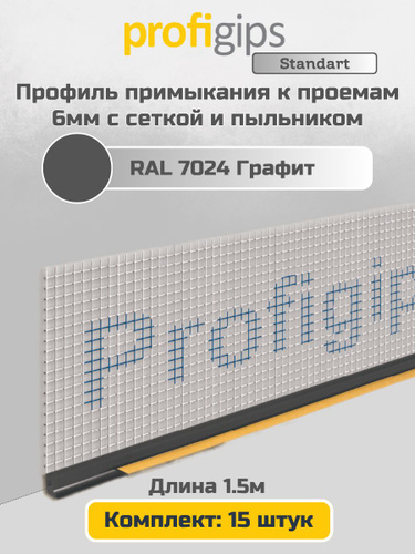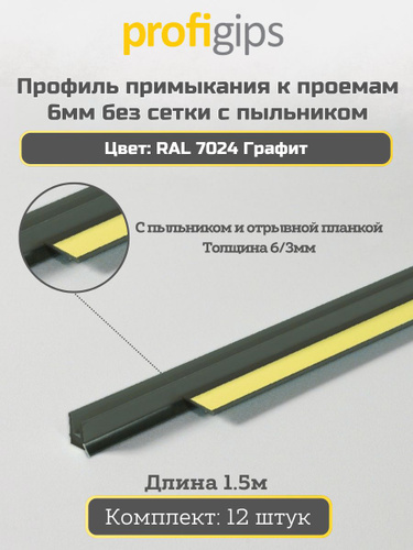 Оконный профиль примыкания 6мм * 1500мм (9 штуки) без сетки, с манжетой Profigips (Профигипс) RAL 7024 Графит