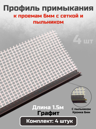 Оконный профиль примыкания (нащельник) 6мм * 1500мм (4 штуки) с сеткой и манжетой, цвет графит