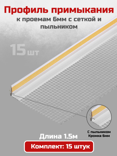 Оконный профиль примыкания (нащельник) 6мм * 1500мм (15 штук) с сеткой и манжетой