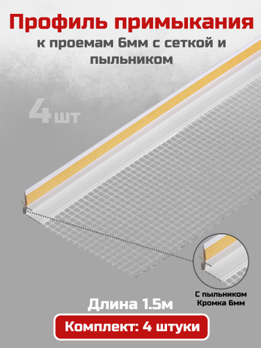 Оконный профиль примыкания (нащельник) 6мм * 1500мм (4 штуки) с сеткой и манжетой