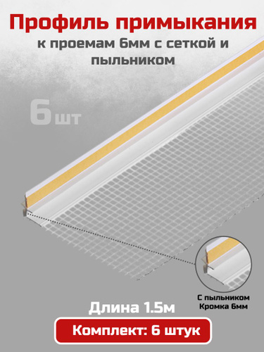 Нащельник для окон профиль примыкания 6мм * 1500мм (6 штук) с сеткой и манжетой, цвет: белый, Profigips (Профигипс)