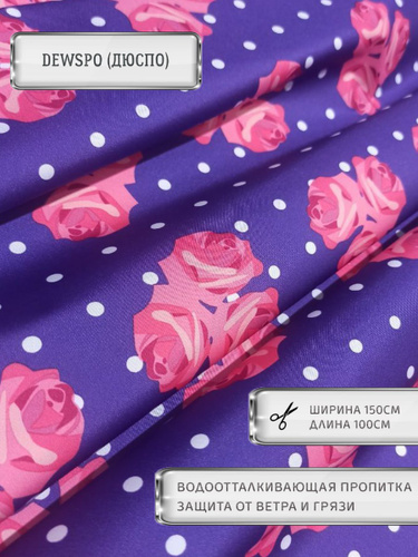 Ткань курточная Дюспо (Dewspo 240PU Milky) 150*100см. Розы фиолет