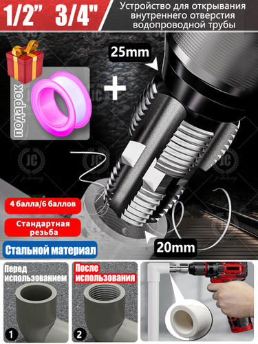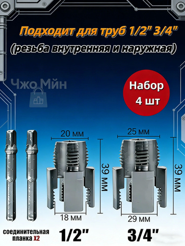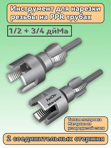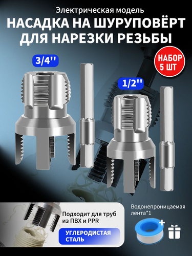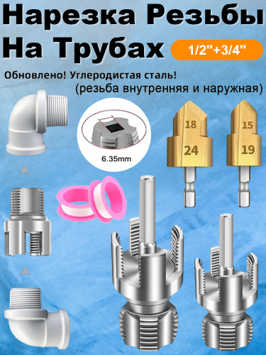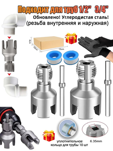 насадка для нарезки резьбы на пластиковых трубах;Комплект резьбонарезного инструмента 1/2 + 3/4 дюйма, подходит для труб PPR/PVC диаметром 1/2 и 3/4 дюйма