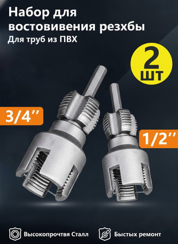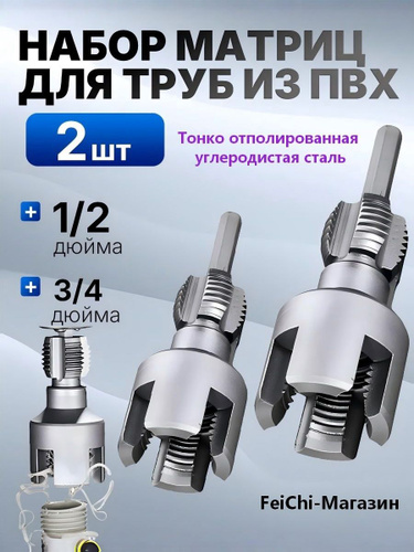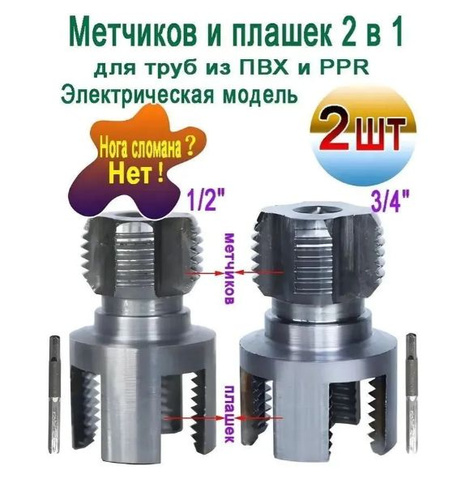Набор матриц для труб из ПВХ, метчиков и плашек 2 в 1, 1/2"+3/4", 2 шт