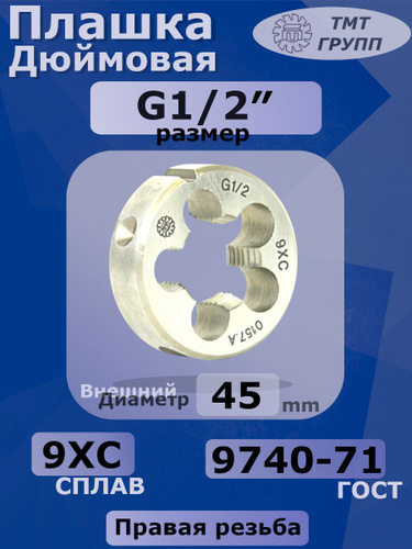 Плашка G 1/2" трубная цилиндрическая 9ХС ТМТ ГРУПП