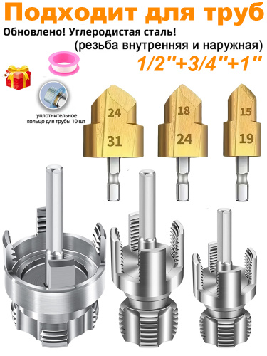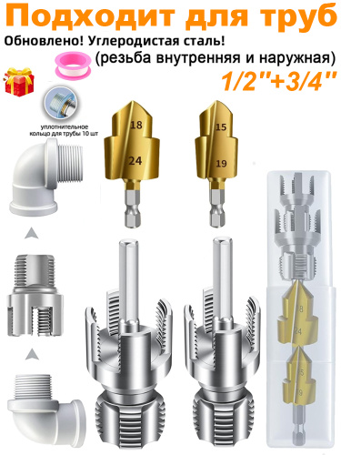 Набор матриц для труб из ПВХ, метчиков и плашек 2 в 1, 1/2"+3/4"+1" и Набор ступенчатых сверл