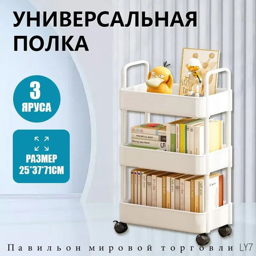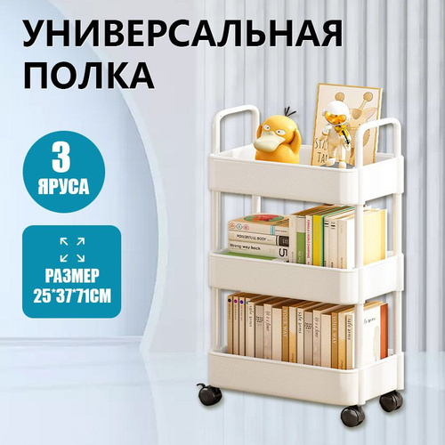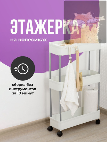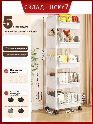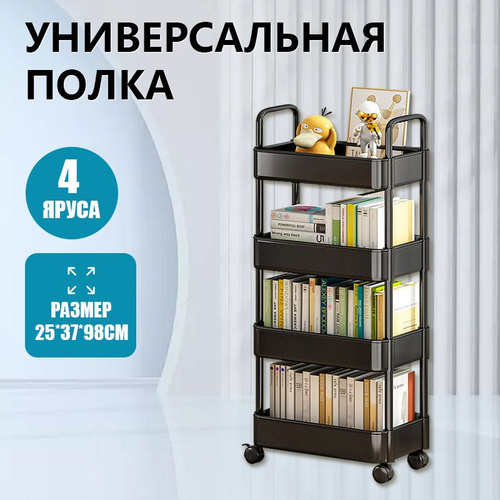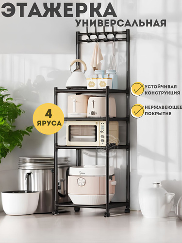 Этажерка на колесиках 4 яруса с крючками, универсальная