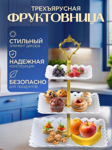 Фруктовница трёхъярусная этажерка для фруктов Shiny Kitchen, белая