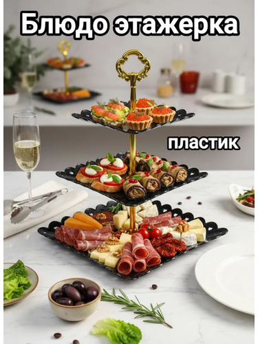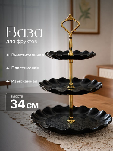 Фруктовница трехъярусная этажерка пластиковая Shiny Kitchen, черная