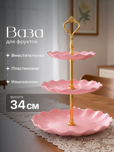 Фруктовница трехъярусная этажерка пластиковая Shiny Kitchen, розовая