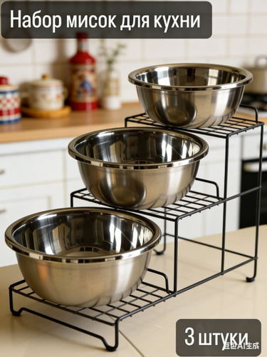 IKEA Миска 2800 мл, 3200 мл, 4500 мл серебристый, 3 шт