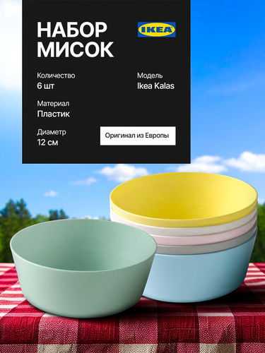 Миска ИКЕА КАЛАС (KALAS IKEA), 6 шт, разноцветный