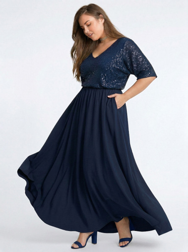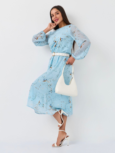 Платье FORTO Женское шифоновое длинное с длинным рукавом вечернее праздничное голубое