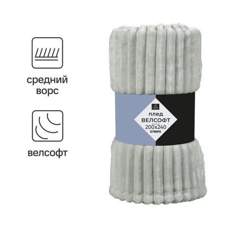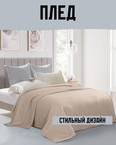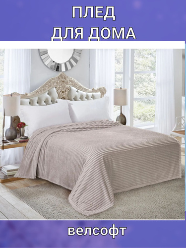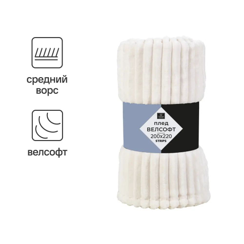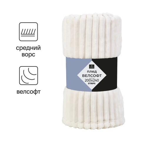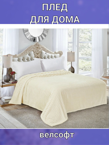 Плед для дома 200x240 см из велсофта, цвет молочный