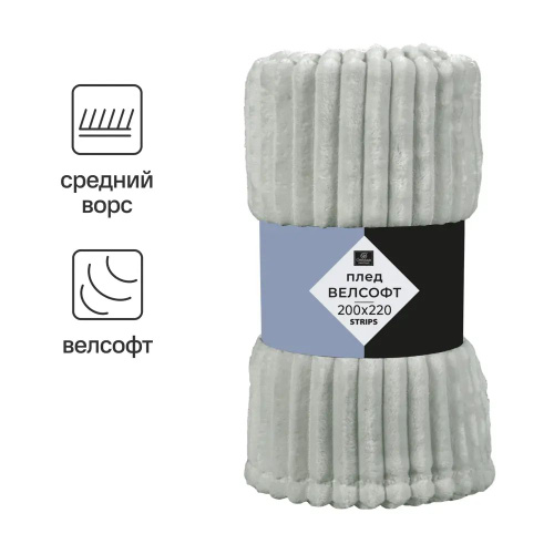 Плед для дома 200x220 см из искусственного меха, цвет светло-серый