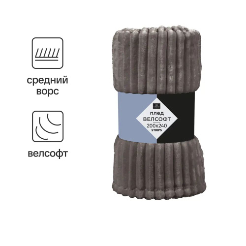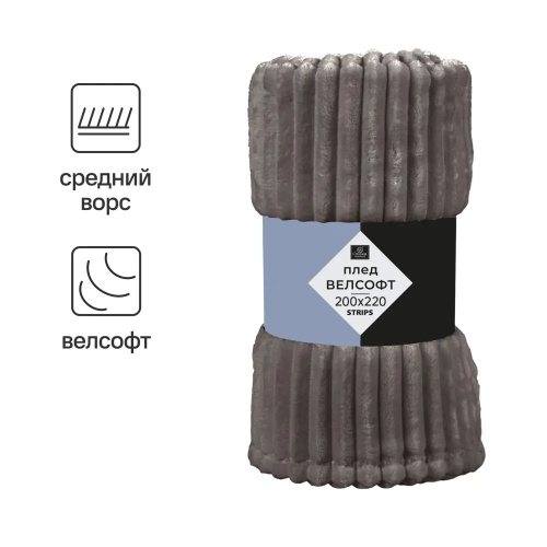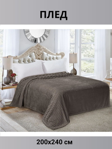 Плед для дома 200x220 см из велсофта, цвет коричневый
