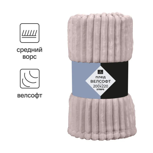 Плед для дома 200x220 см из велсофта, цвет розовый