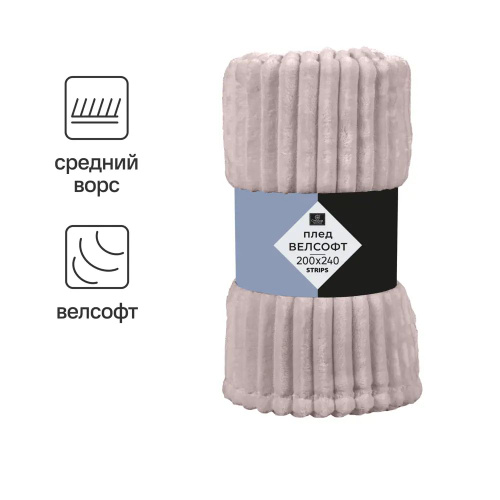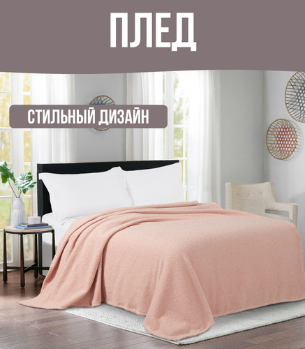 Плед для дома 200x240 см из велсофта, цвет розовый