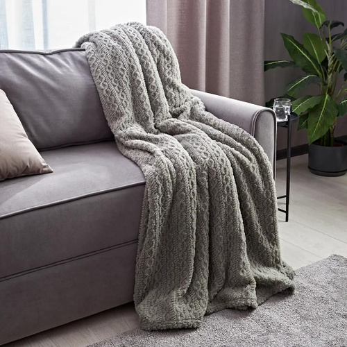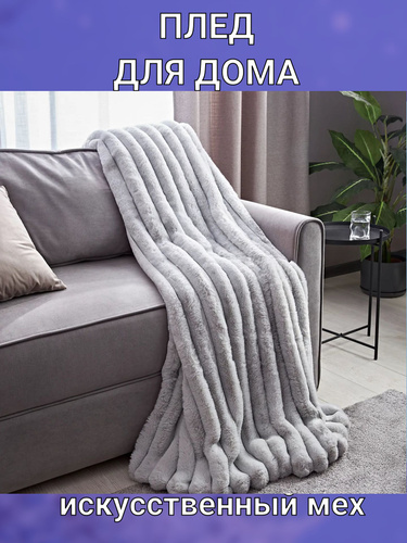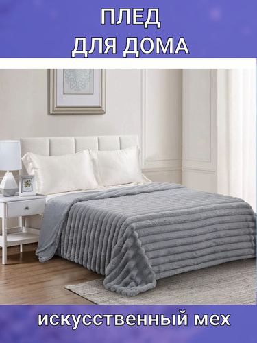 Плед для дома 200x220 см из искусственного меха, цвет серый