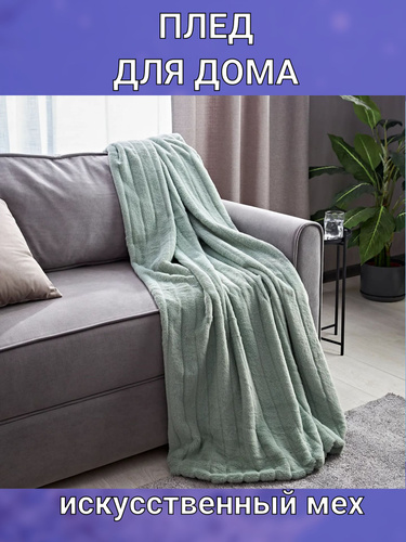 Плед для дома 200x220 см из искусственного меха, цвет зеленый
