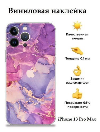 Гидрогелевая пленка на заднюю крышку телефона iPhone 13 Pro Max с защитой камеры / Защитная пленка для Айфон 13 Про Макс с принтом Marble Magenta