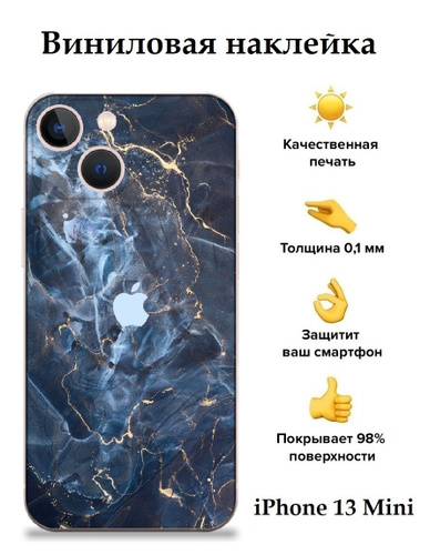 Гидрогелевая пленка на заднюю крышку телефона iPhone 13 Mini с защитой камеры / Защитная пленка для Айфон 13 Мини с принтом Marble Blue