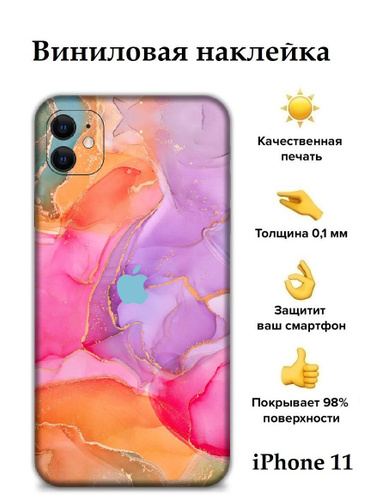 Гидрогелевая пленка на заднюю крышку телефона iPhone 11 с защитой камеры / Защитная пленка для Айфон 11 с принтом Marble Сolorful