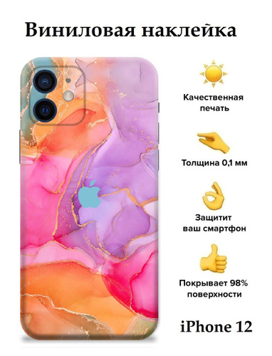 Гидрогелевая пленка на заднюю крышку телефона iPhone 12 с защитой камеры / Защитная пленка для Айфон 12 с принтом Marble Сolorful