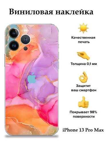 Гидрогелевая пленка на заднюю крышку телефона iPhone 13 Pro Max с защитой камеры / Защитная пленка для Айфон 13 Про Макс с принтом Marble Сolorful
