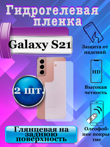 Гидрогелевая защитная плёнка на заднюю поверхность для Samsung Galaxy S21 глянцевая (2 шт.) / бронепленка на заднюю крышку Самсунг Галакси S21