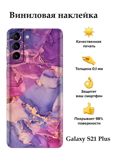 Гидрогелевая пленка на заднюю крышку телефона Galaxy S21 + Plus с защитой камеры / Защитная пленка для Галакси С21 + Плюс с принтом Marble Magenta